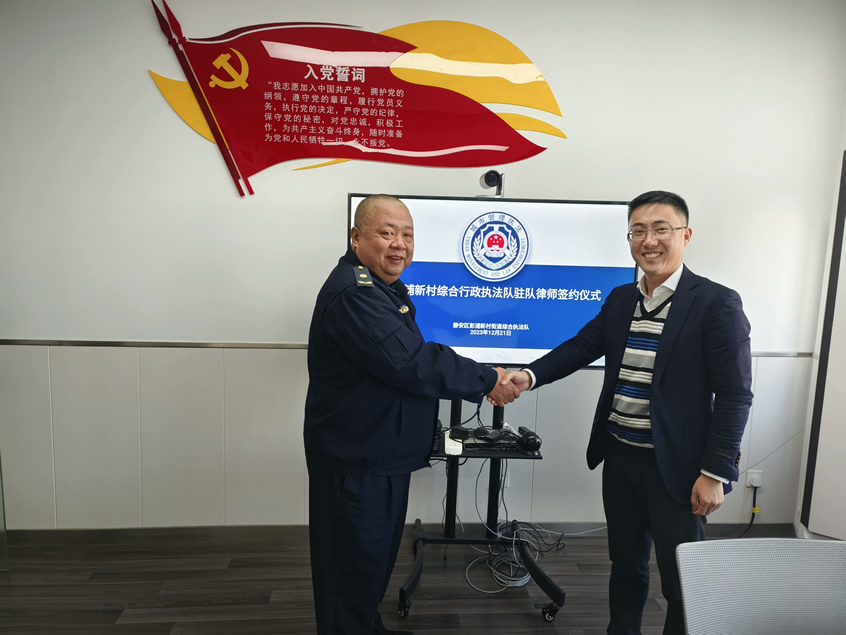 本所高级合伙人李慕时律师长期担任包括静安区市政工程和配套管理中心、静安区城管执法局在内的多家政府主管部门和国有企业的法律顾问,并在涉及城管执法、房屋安全责任、不动产商事纠纷等诸多领域有着丰富的诉讼服务和矛盾化解经验。此次再次被聘请为彭浦新村街道综合行政执法队任驻队律师,必将进一步加深本所和相关政府主管部门全方位合作共赢关系。