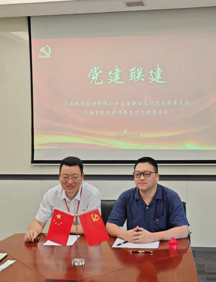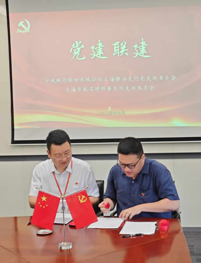 为进一步发挥党章党纪学习教育工作对业务工作的推进作用,不断推进党支部引领下的法律服务触角延伸和公益服务渠道拓展,经友好协商,上海市毅石律师事务所党支部经与宁波银行上海静安支行党支部于2024年7月成立党建联建合作平台。