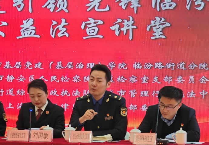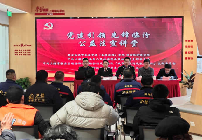 2025年2月19日下午,由静安区临汾路街道综合行政执法队牵头组织的“党建引领 先锋临汾 公益法宣讲堂”系列活动在临汾社区党建服务中心举行。静安区临汾路街道综合行政执法队党支部胥晶晶书记、静安区检察院公益检察室刘国敏检察官、静安区城市基层党建治理学院临汾社区分院等相关领导出席活动,我所高级合伙人李慕时律师应邀参加活动,所办公室主任、支部委员褚江律师一同参加。临汾社区相关物业单位负责人、上海沪家装饰集团装修监理组工作人员等共同参加活动。