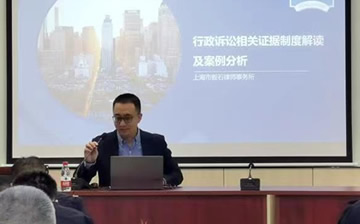 11月21日上午,我所褚江律师应静安区城管执法局邀请,对正在开展集中培训的静安区城管执法工作人员作了题为《行政诉讼相关证据制度解读及案例分析》的专题讲座。